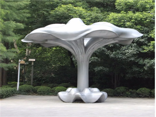 异型花朵采用工厂预制,现场组装的施工工艺,表面做银色氟碳喷涂处理