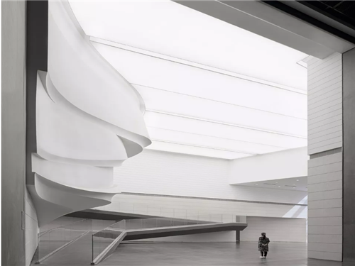 ▲室内空间也同样大量应用GRC材料营造出现代、科幻的空间感